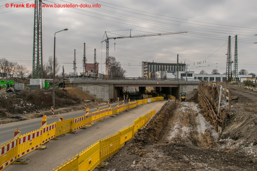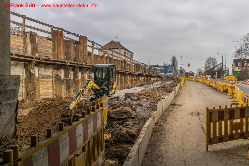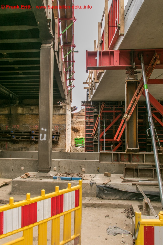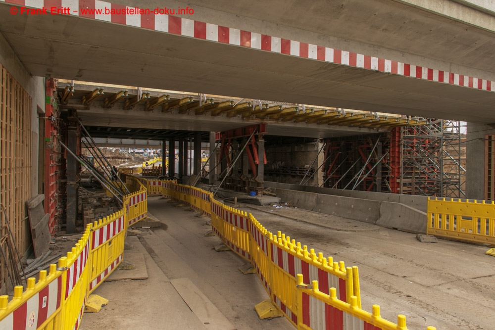 Zweiter Überbau West betoniert, Baugrube für Stützwand Ost