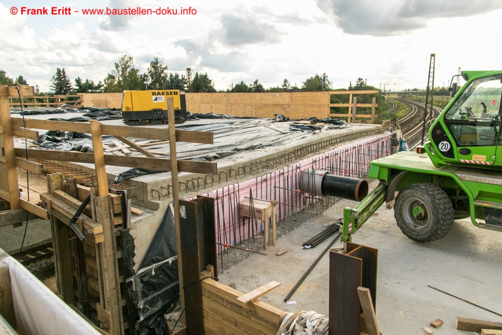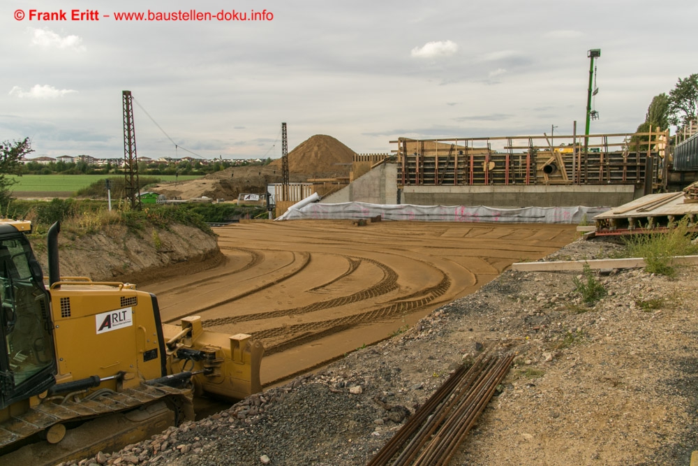 Überbau betoniert, Verfüllung der Widerlager, Straßenbau beginnt mit Tiefbauarbeiten
