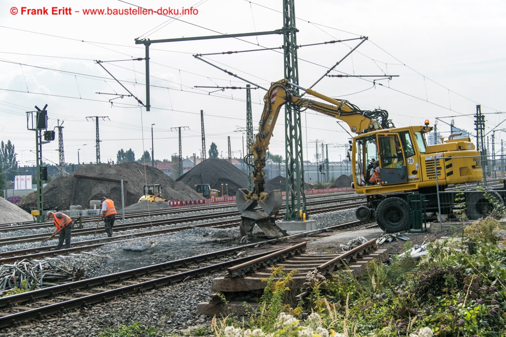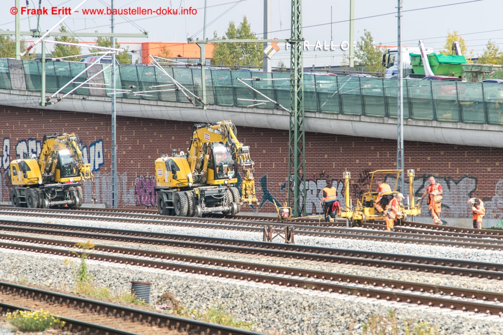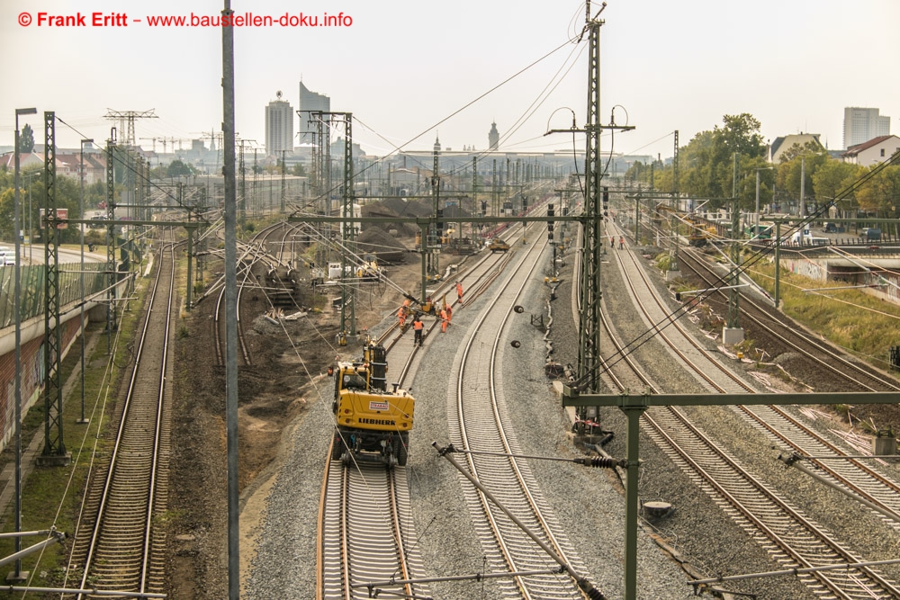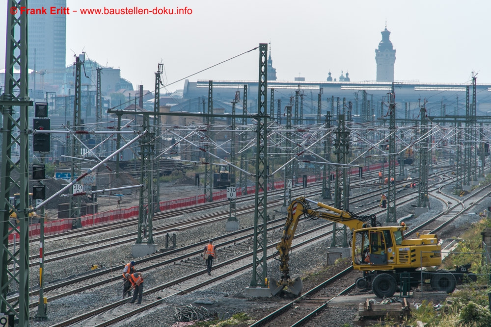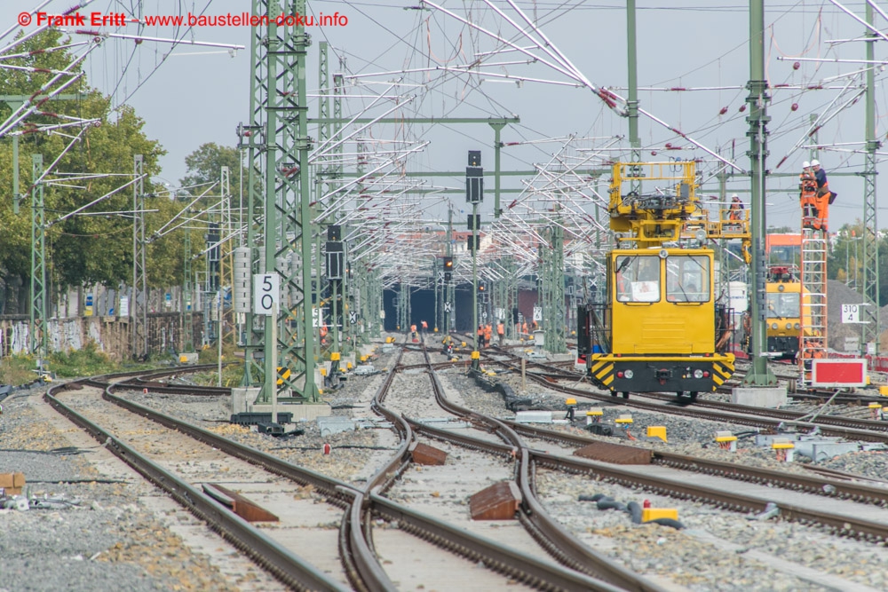 Arbeiten an den Oberleitungen, letzte Gleisbauarbeiten zur Umschwenkung