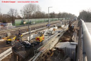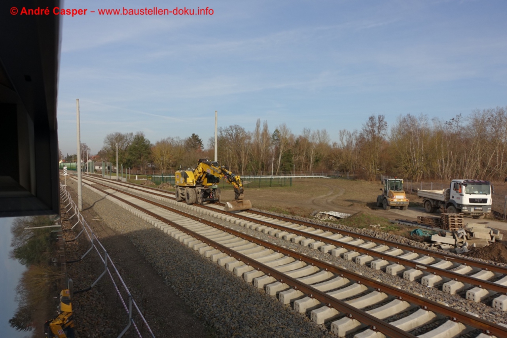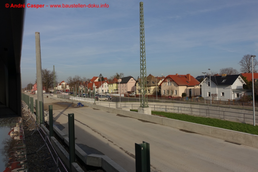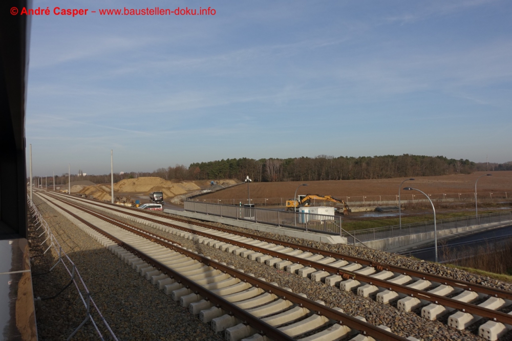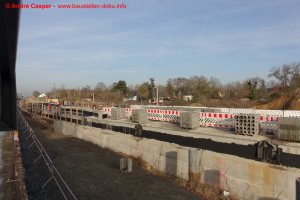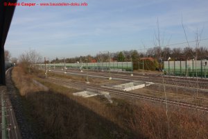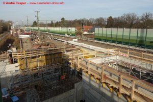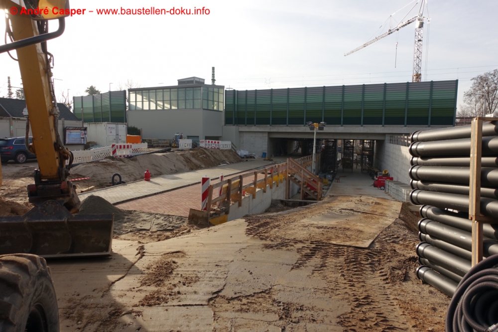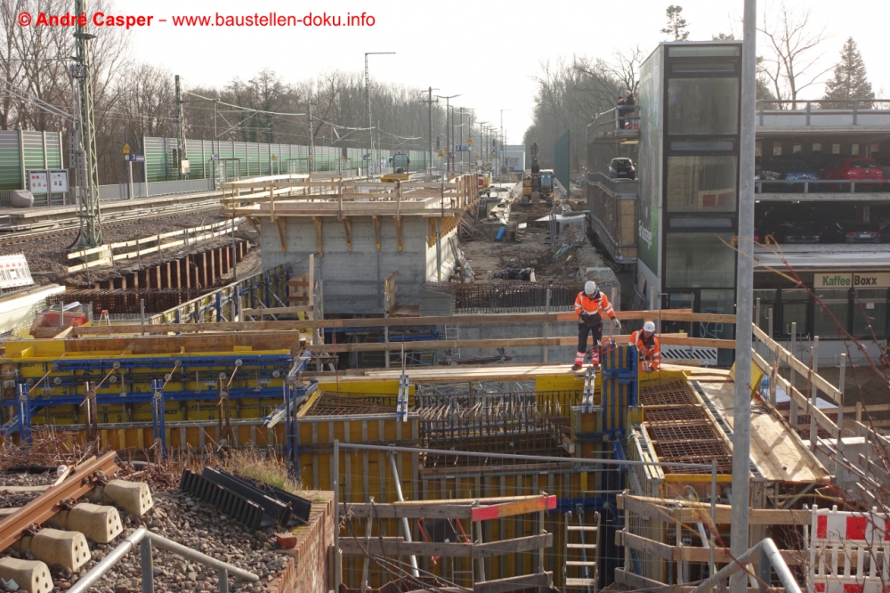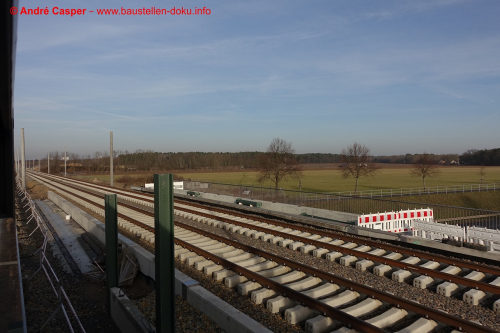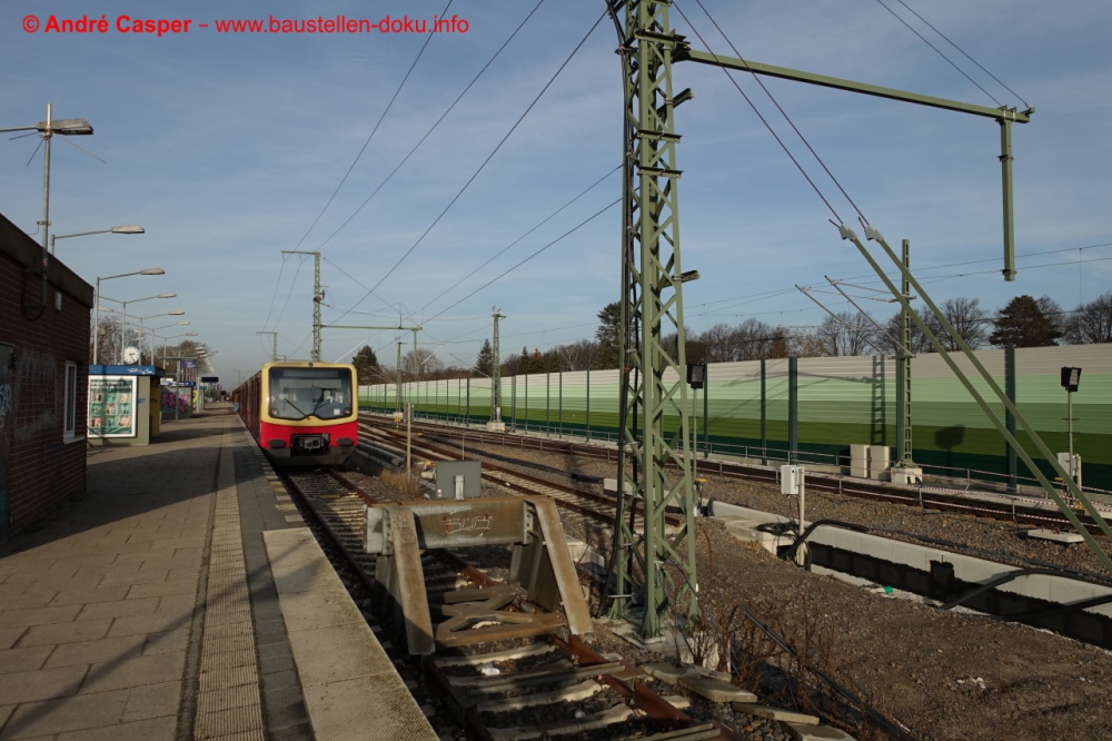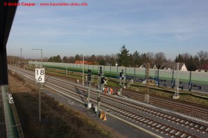 Blankenfelde: Errichtung EÜ Karl-Marx-Straße, Gleisbau und Oberleitung weitgehend fertig; Mahlow: Kreuzungsbauwerk rohbaufertig, Straßenanlagen fertiggestellt, Beginn Gleisbau