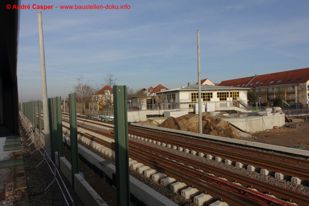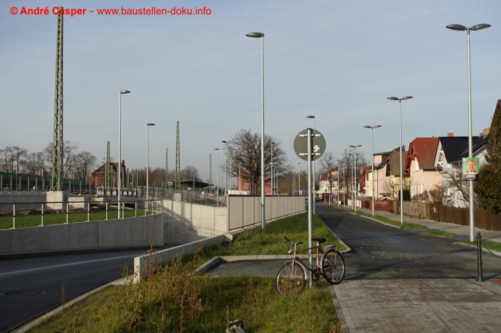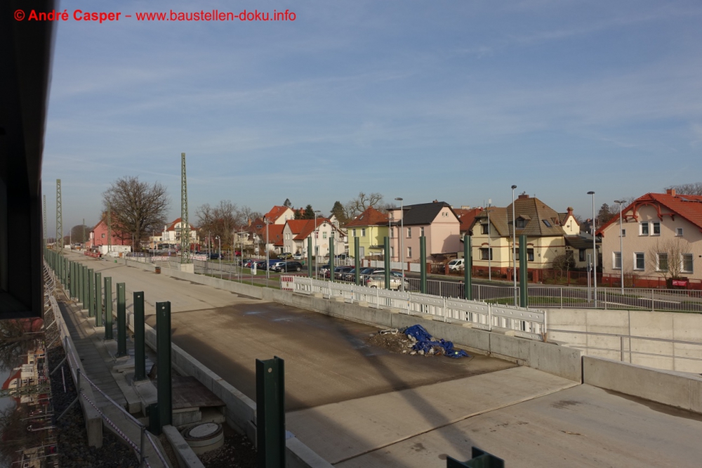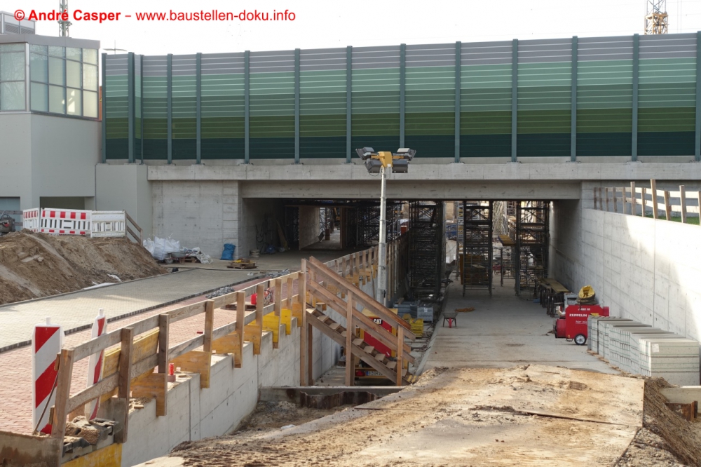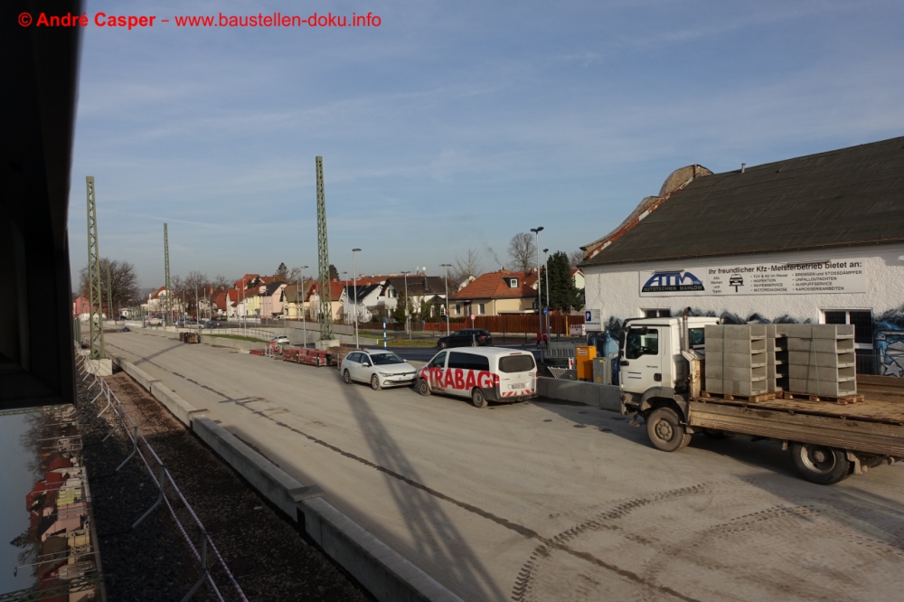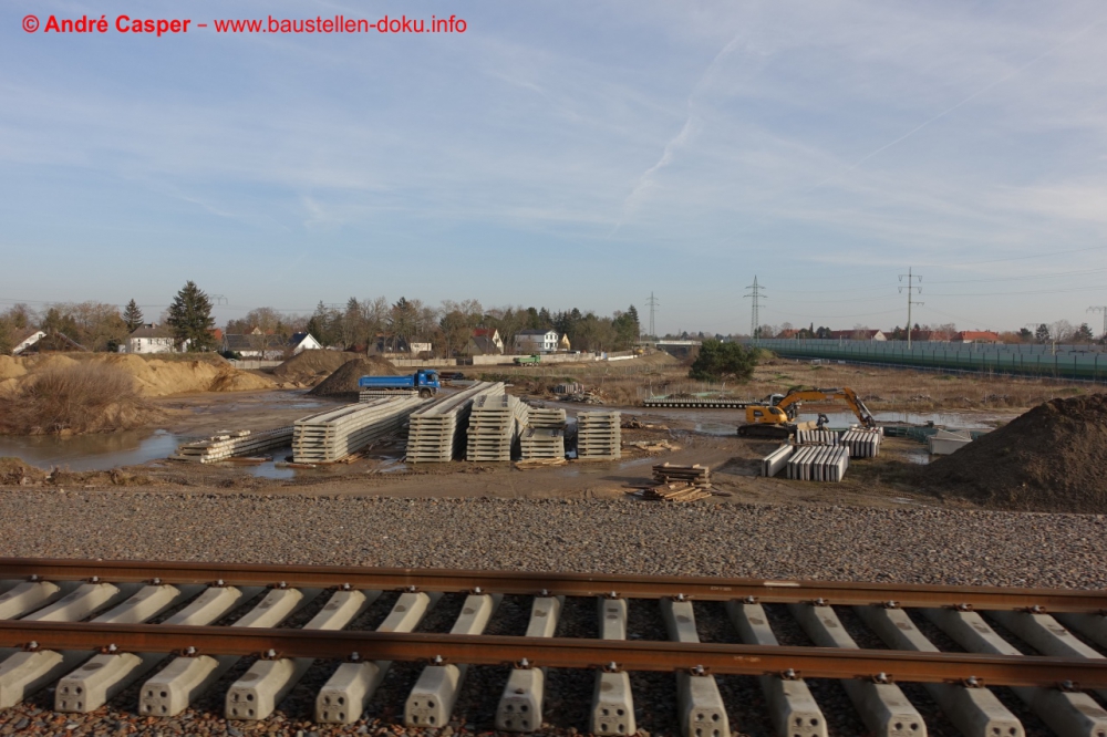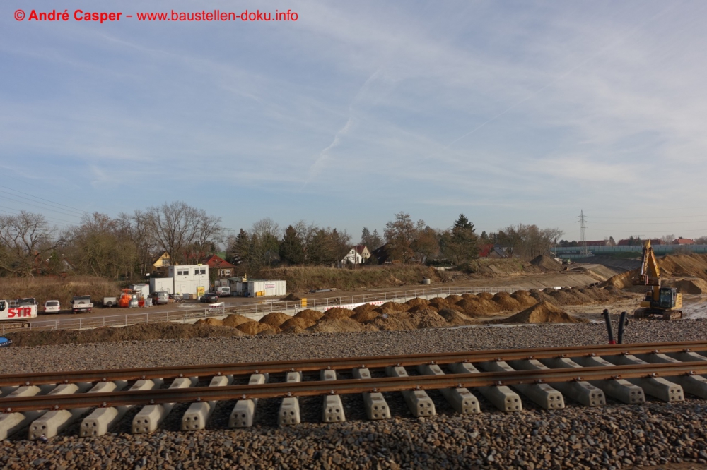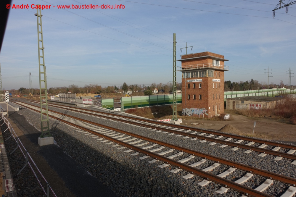 Blankenfelde: Errichtung EÜ Karl-Marx-Straße, Gleisbau und Oberleitung weitgehend fertig; Mahlow: Kreuzungsbauwerk rohbaufertig, Straßenanlagen fertiggestellt, Beginn Gleisbau