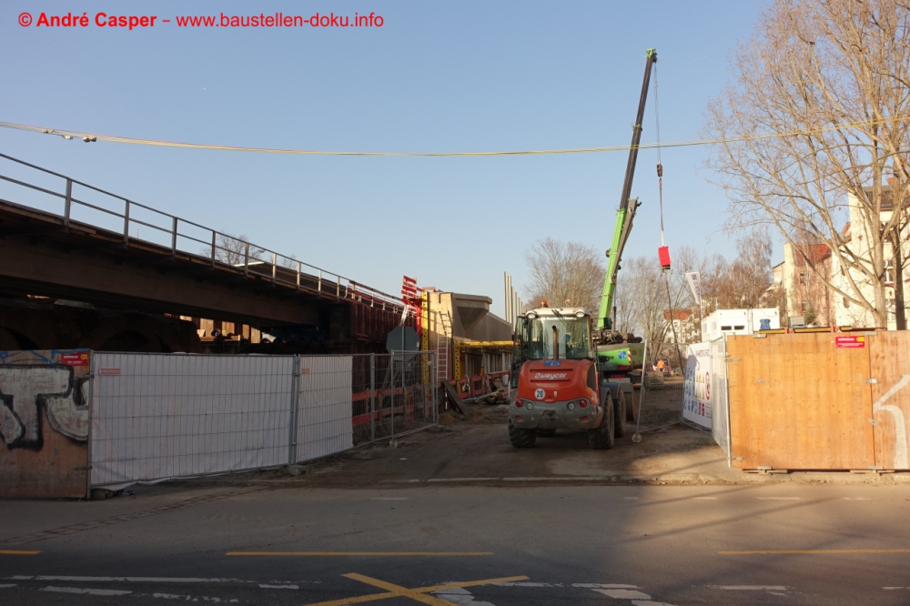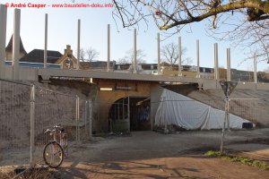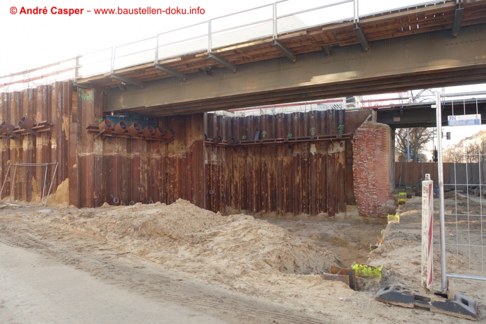 Errichtung Stützwände; Widerlager teilweise abgebrochen; neuer Nordzugang freigelegt