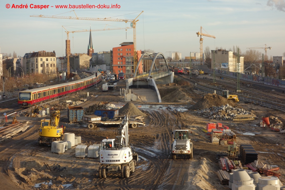 Warschauer Straße: Aufbau Bahnsteig A; Ostkreuz: Errichtung Fahrbahnplatte Südringkurve, Bahnsteig Ro fertiggestellt, Aufbau Bahnsteig E, Baubeginn Hauptstraße; Rummelsburg: Errichtung lastverteilende Platte