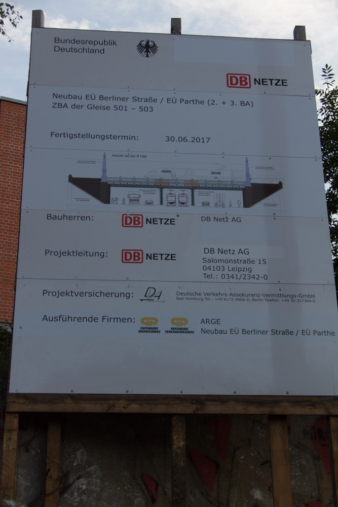 EÜ Berliner Straße inkl. historisches Portal fertig gestellt, Errichtung zweiter Bogen EÜ Parthe