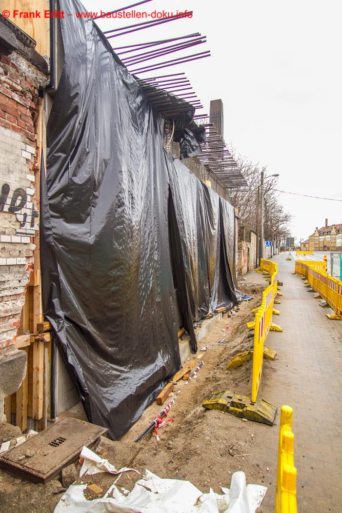 Widerlager Nord fertig betoniert, Bewehrung Fundamente Pfeiler, Abbruch EÜ Parthe Teil 1 abgeschlossen