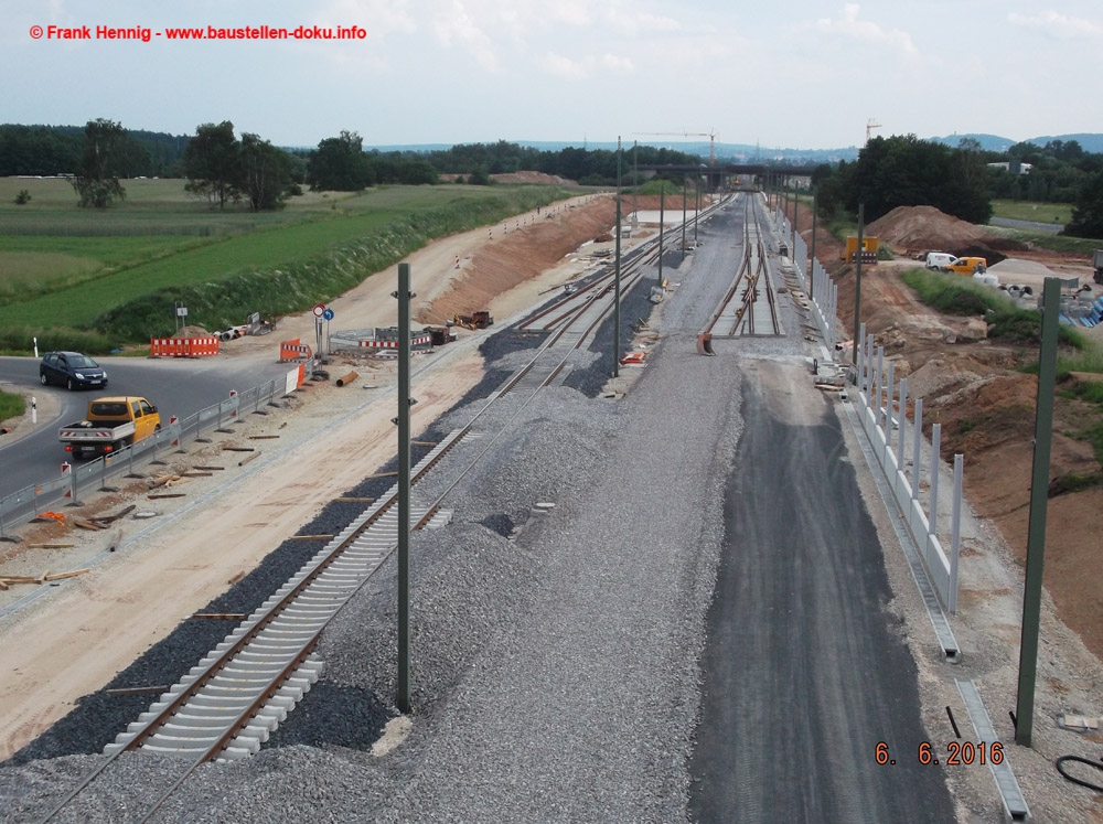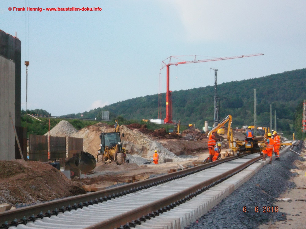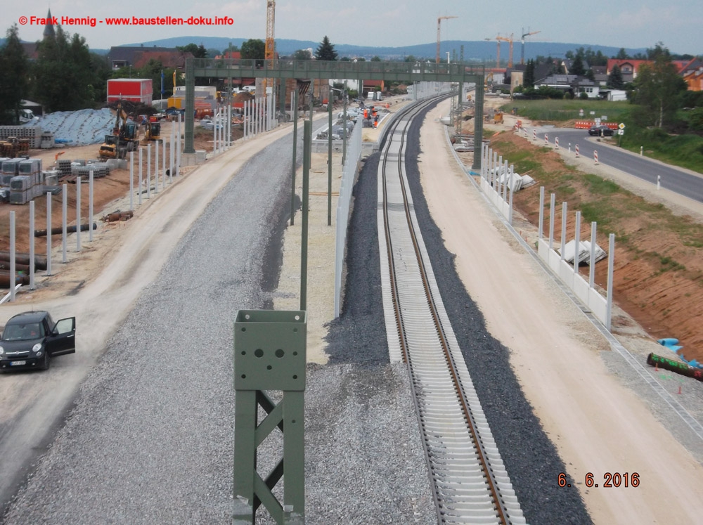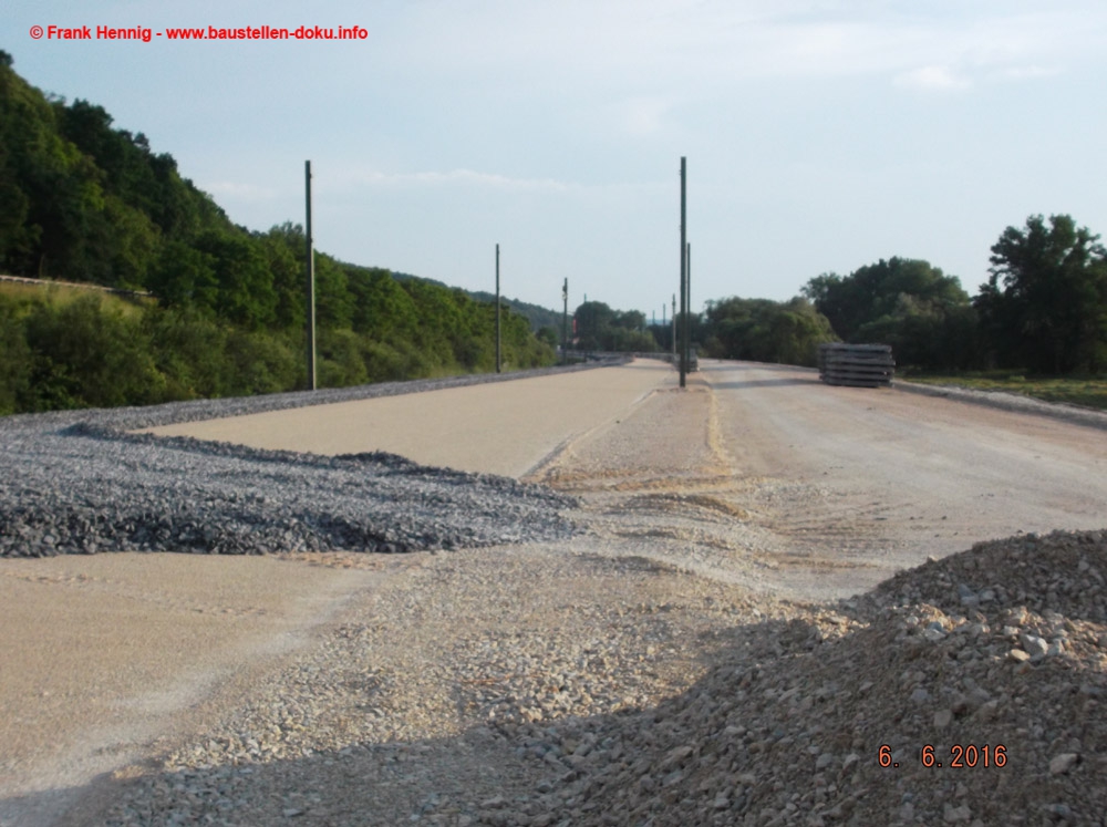 Erster Schotterzum im Baufeld bei Breitengüßbach, Errichtung der Ingenieurbauwerke
