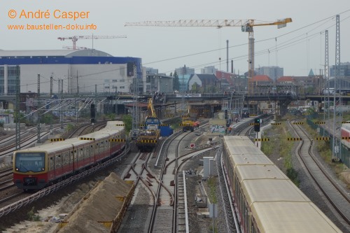 Warschauer Straße: Bahnsteig B fast fertig, Umbau Fernbahngleise; Ostkreuz: Bahnsteig D fast fertig; Rummelsburg: Betonage Trogbauwerk; Nachtbilder der alten Bahnsteige