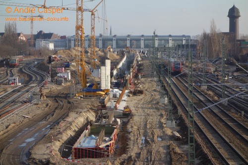 Rummelsburg: Stützwand und Trogbauwerk fertig; Gründung EÜ Karlshorster Straße Nord und Bogenbrücke; Ostkreuz: Errichtung Rampe und Brücke Südringkurve; Stützwand am Ostbahnhof vor der Erneuerung
