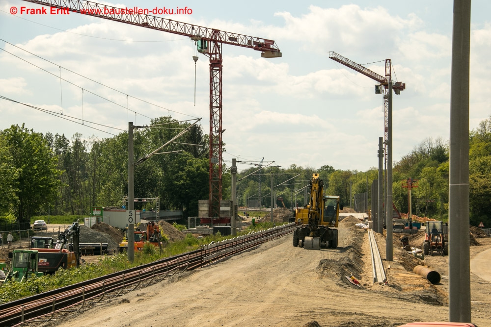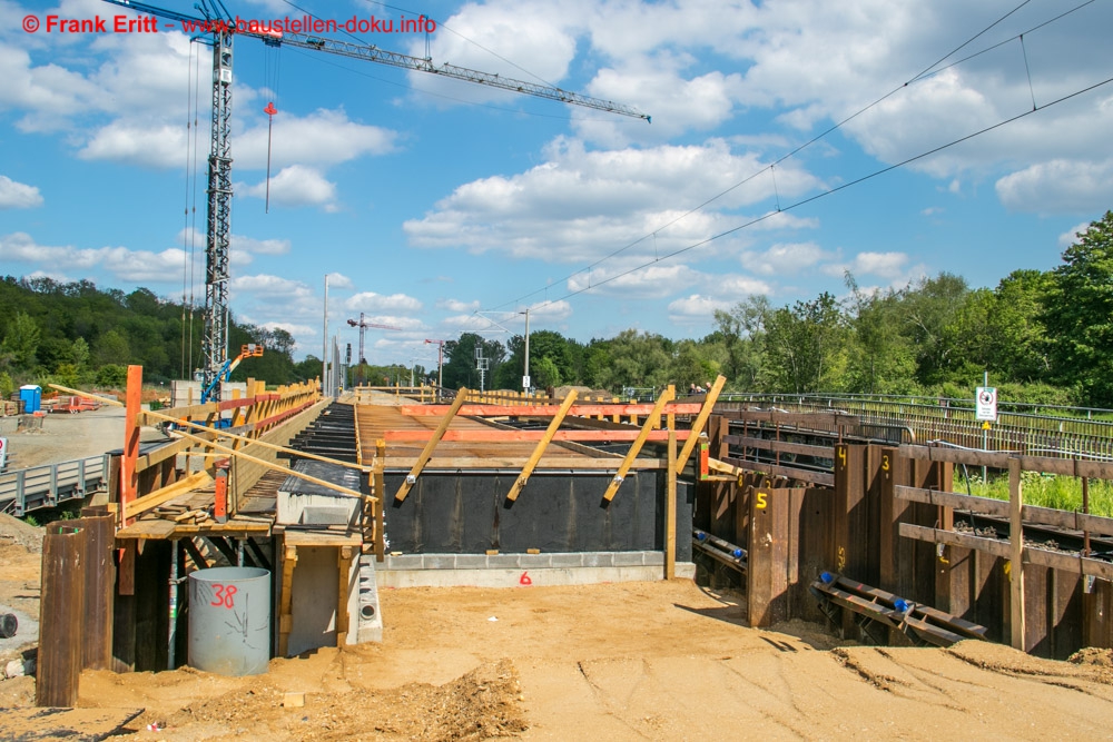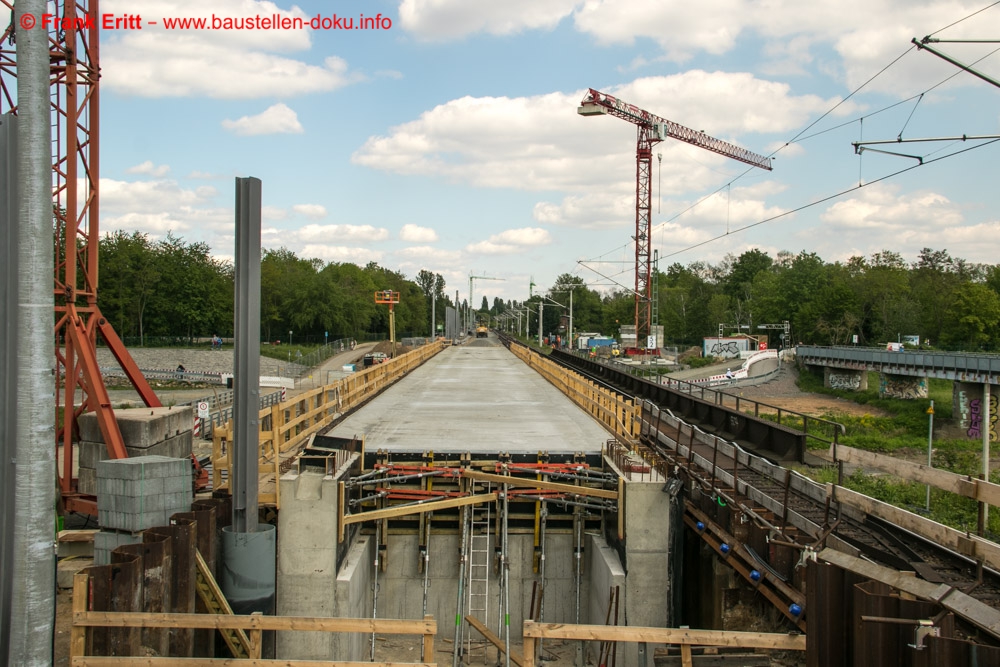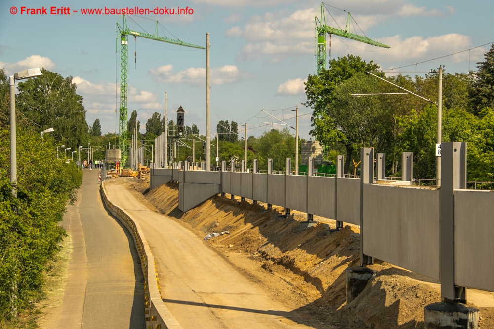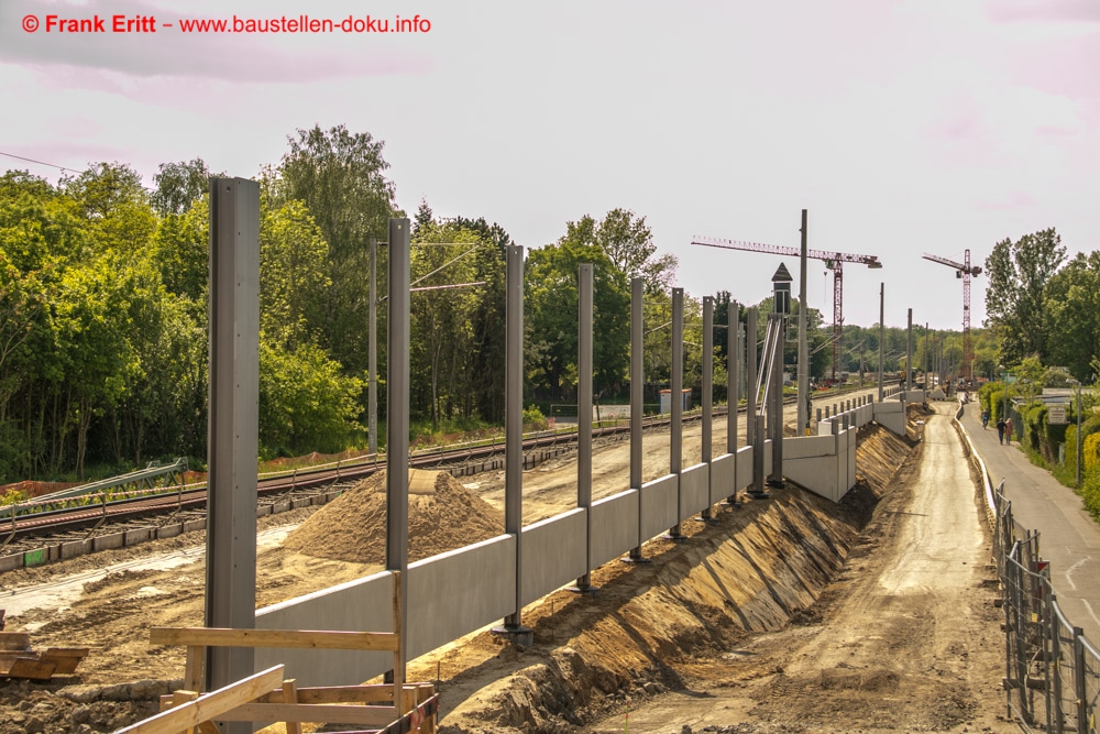 Brückenüberbauten betoniert, Arbeiten an den Schallschutzwänden