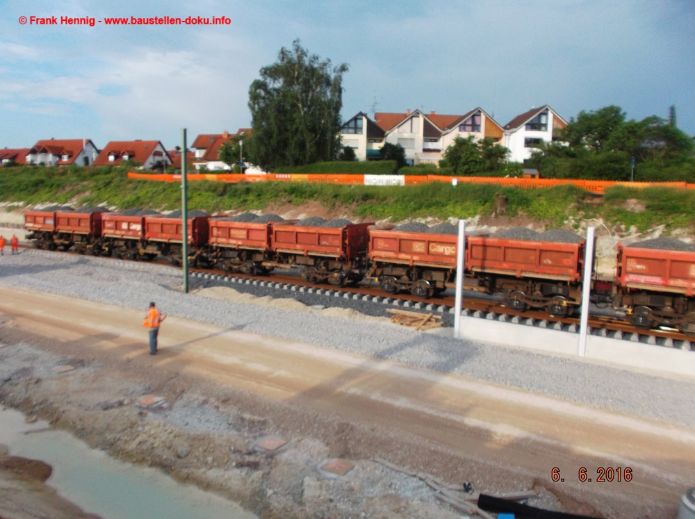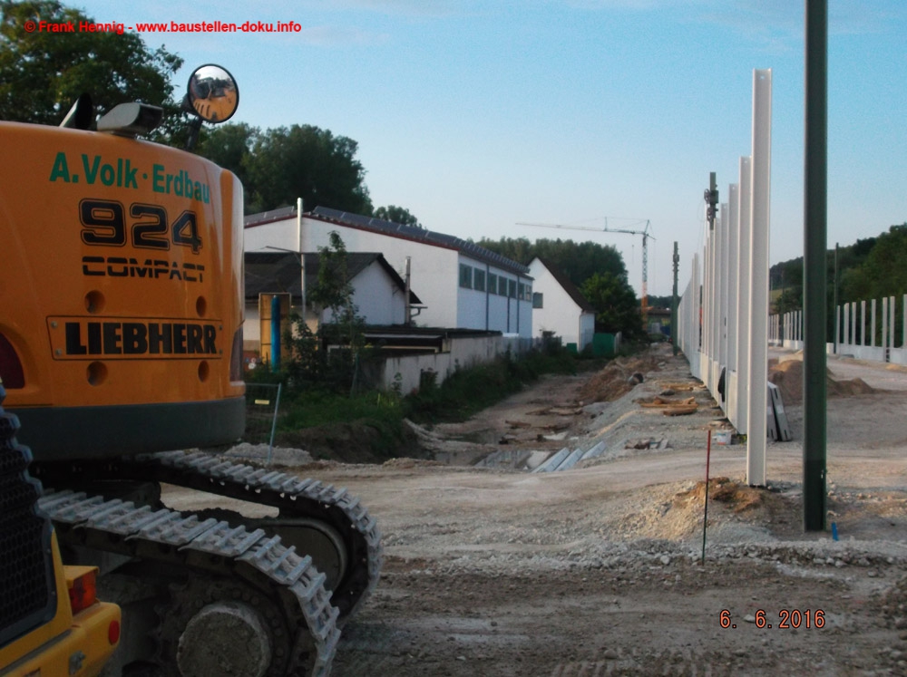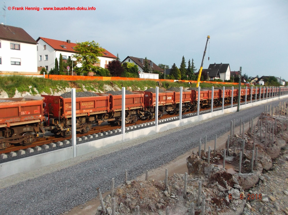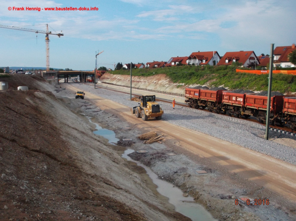 Erster Schotterzum im Baufeld bei Breitengüßbach, Errichtung der Ingenieurbauwerke