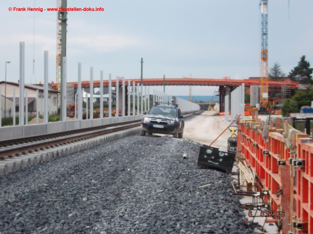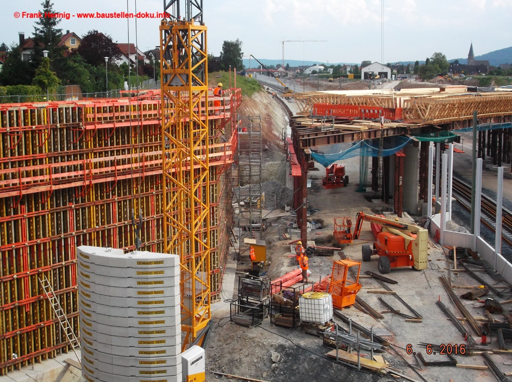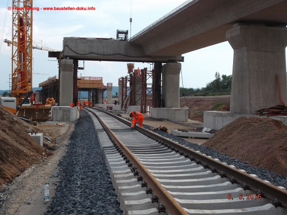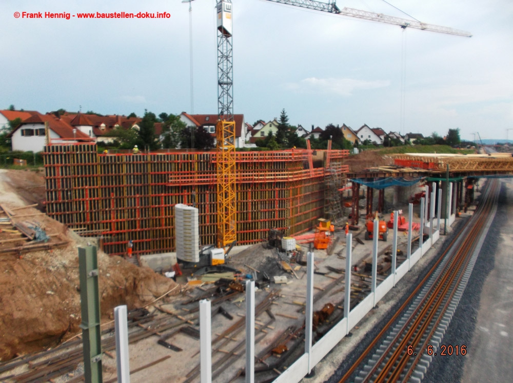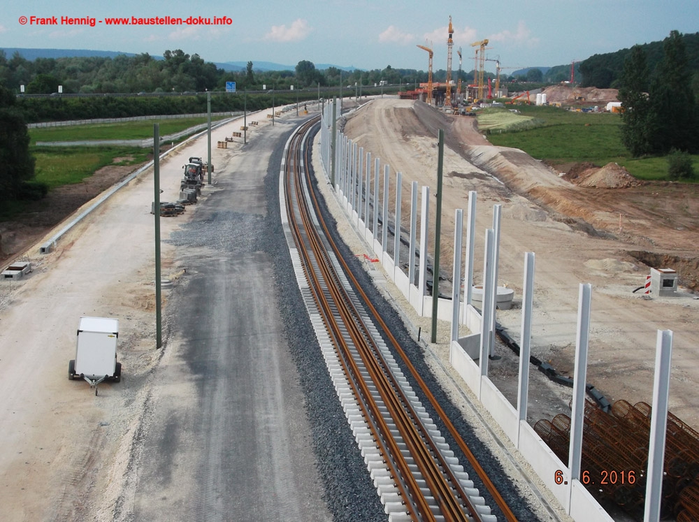 Erster Schotterzum im Baufeld bei Breitengüßbach, Errichtung der Ingenieurbauwerke