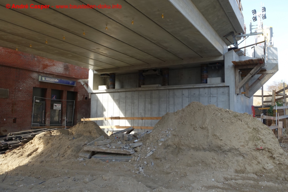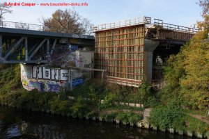 Errichtung Fernbahn-Betontrog; EÜ Attilastraße, Maulbronner Ufer und Schichauweg rohbaufertig; Neubau Südzugang am S-Bf Buckower Chaussee