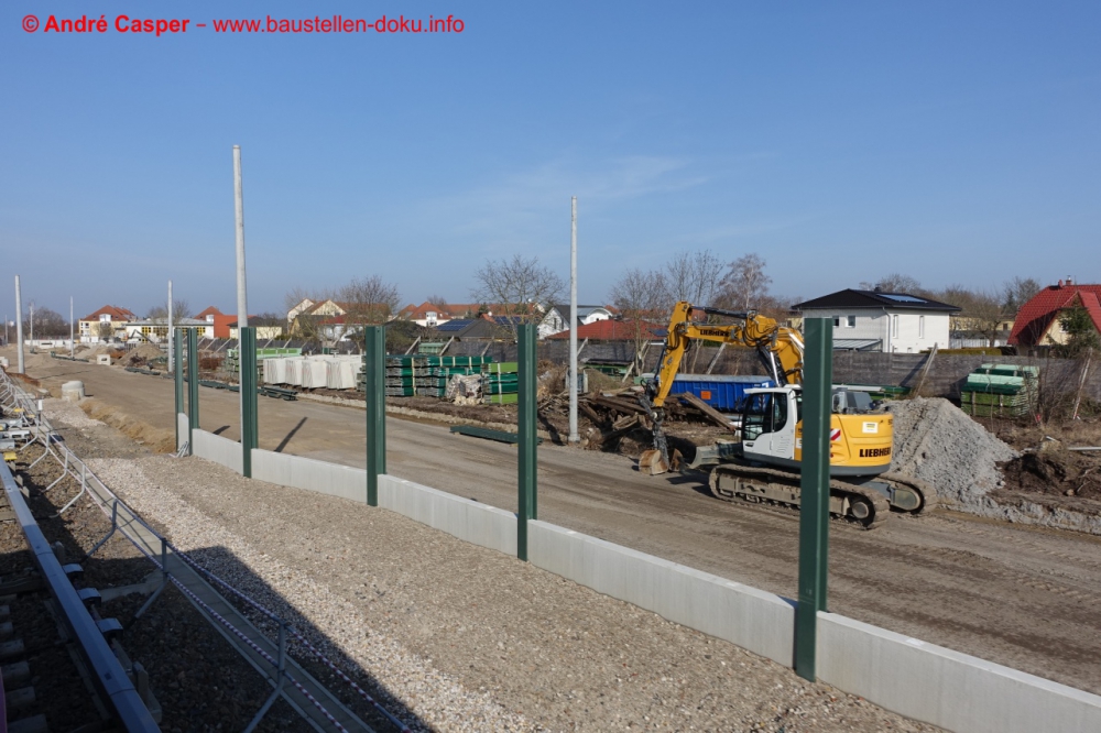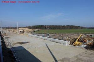 Straßenbau Trebbiner Straße und Verzögerung Verkehrsfreigabe; EÜ Berliner Straße freigegeben; Aufbau Planum Fernbahn; Montage Schallschutzwände