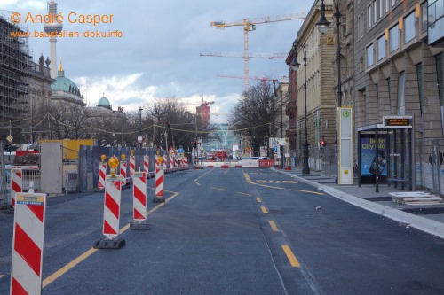 Unter den Linden: Straße wiederhergestellt; Museumsinsel: Straßenbau am westlichen Baufeld, östliche Decke betoniert; Berliner Rathaus: Bewehrung der Decke an der Spandauer Straße
