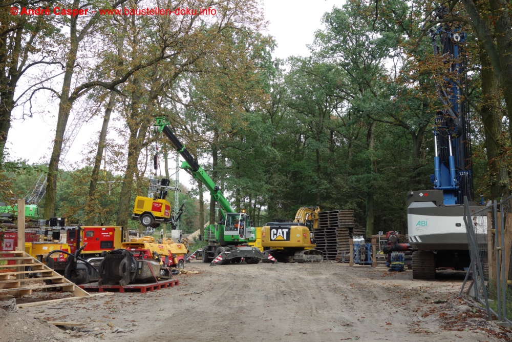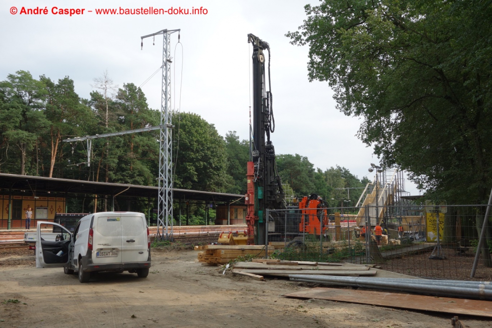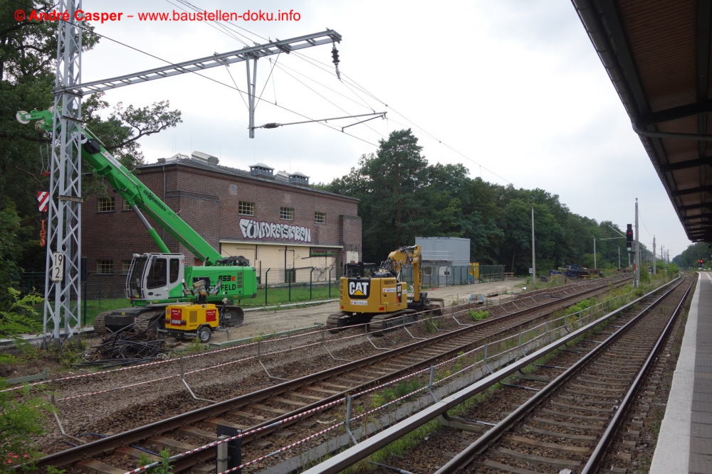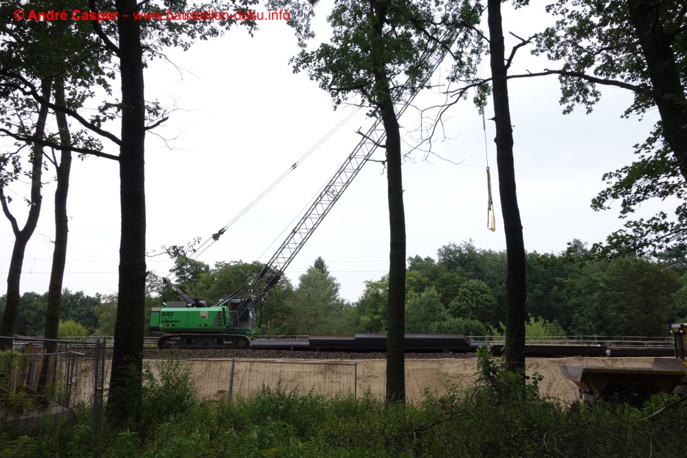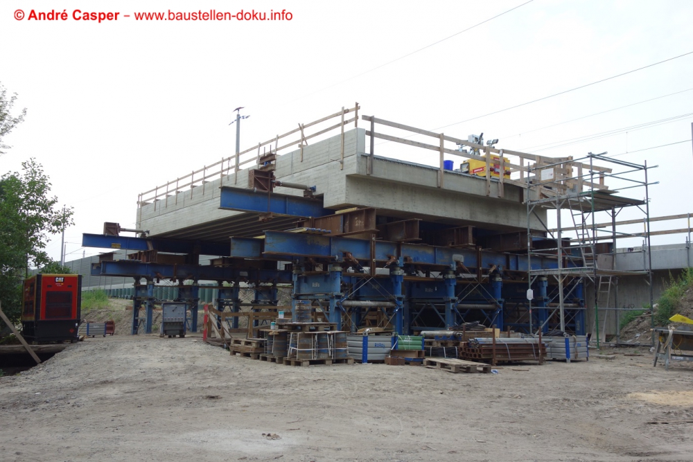 Neue Bauphase Rahnsdorf - Wilhelmshagen; Vorbereitung des Brückenaushubs in Rahnsdorf und Wilhelmshagen; S-Bahn-Überbau Neuenhagener Mühlenfließ kurz vor dem Einschub
