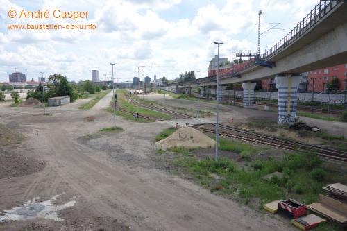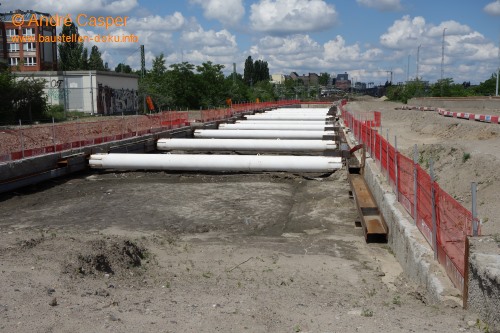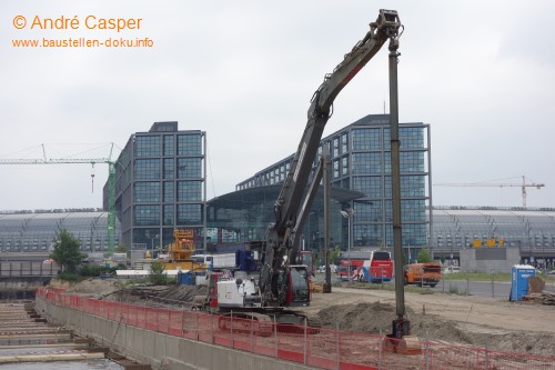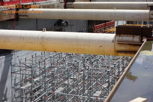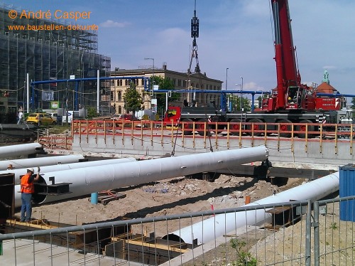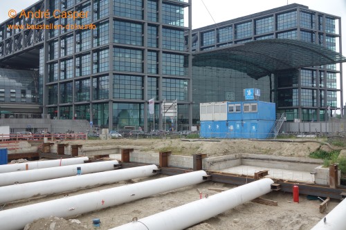 Aussteifung Baugrube B´ vor dem Hauptbahnhof; Errichtung Tunnelblöcke nördlich B96; Aussteifung Baugrube für Trogbauwerk; Baubeginn Rampenbauwerk