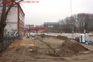 Leitungsarbeiten auf der Nordseite des Sterndamms abgeschlossen, Neuaufbau von Gehweg und Fahrbahn; "Kreisverkehr" an der Kreuzung Sterndamm / Südostallee