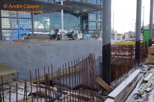Errichtung Haltestelle und Fußwege am Nordbahnhof; Straßenbau Chausseestraße; Haltestellendächer am Hauptbahnhof fertig