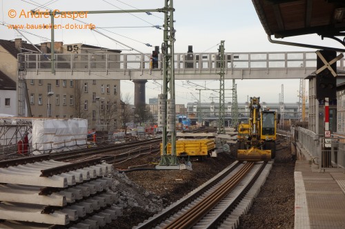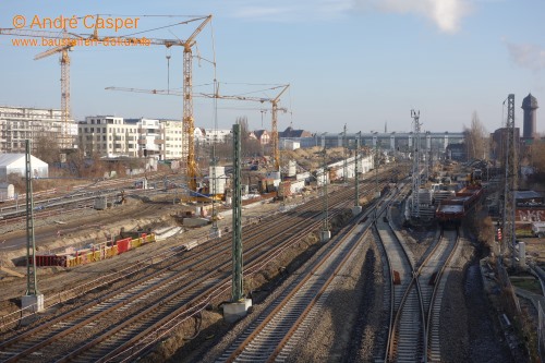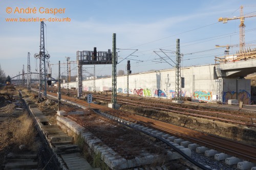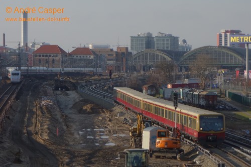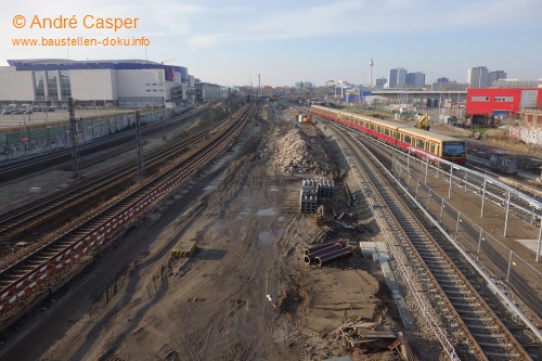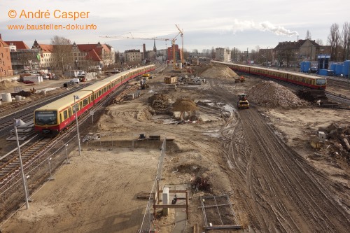 Rummelsburg: Stützwand und Trogbauwerk fertig; Gründung EÜ Karlshorster Straße Nord und Bogenbrücke; Ostkreuz: Errichtung Rampe und Brücke Südringkurve; Stützwand am Ostbahnhof vor der Erneuerung