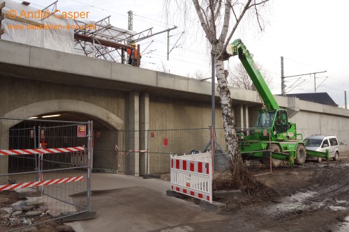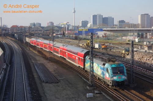 Rummelsburg: Stützwand und Trogbauwerk fertig; Gründung EÜ Karlshorster Straße Nord und Bogenbrücke; Ostkreuz: Errichtung Rampe und Brücke Südringkurve; Stützwand am Ostbahnhof vor der Erneuerung