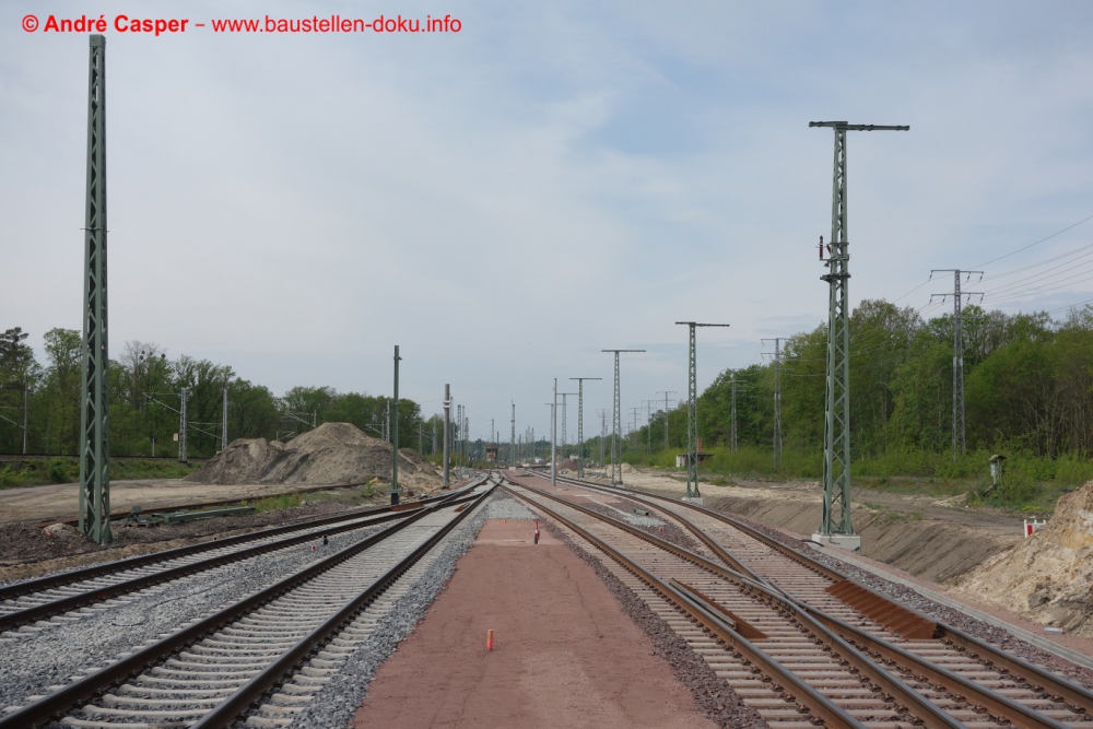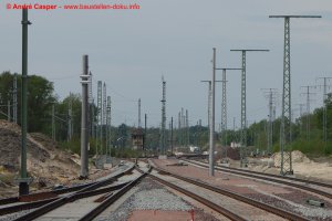 Kreuzungsbauwerk fertiggestellt; Aufbau Oberleitungsanlage und Vorbereitung Gleisverschwenkung im Güterbahnhof; Fußgängerbrücke am Personenbahnhof freigegeben
