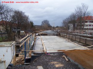 Die Fundamente für den Inselbahnsteig am Südbahnhof sind aufgestellt. Der Brückenüberbau an der Heinrichstraße wurde betoniert. Umbau Bahnknoten Gera - Südanschluss...