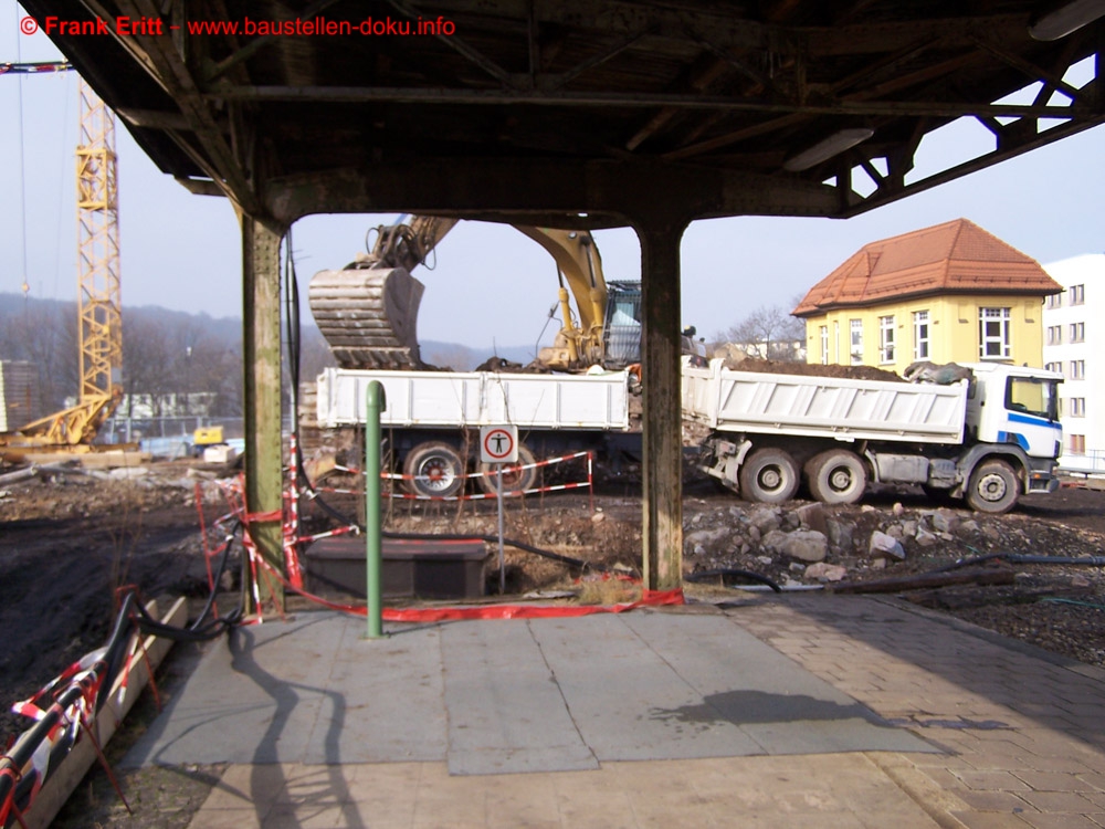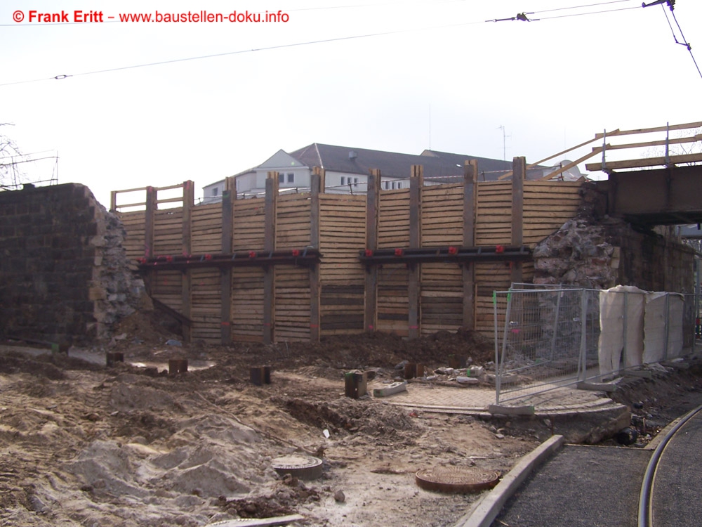 Abschnitt Südbahnhof Die Brücke "Am Fuhrpark" ist überbaut. Die Brücken in der Heinrichstraße, De-Smit-Straße sowie Hainstraße sind abgerissen. Die Brücke über die Fridericistraße wurde gerade betoniert.