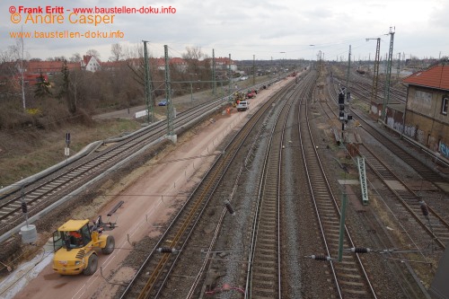 Neubau der Berliner Streckengleise und Oberleitungsanlagen, Vorbereitung ESTW-Aufbau; Neubau EÜ Delitzscher Straße; Neubau EÜ Birkhahnweg