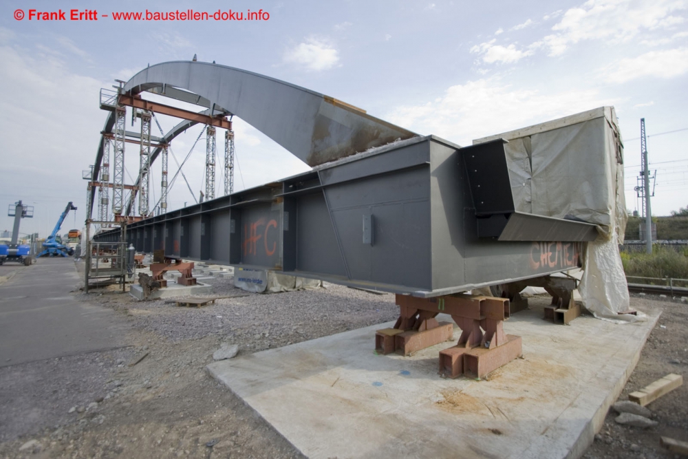 Vormontage Netzwerkbogenbrücke