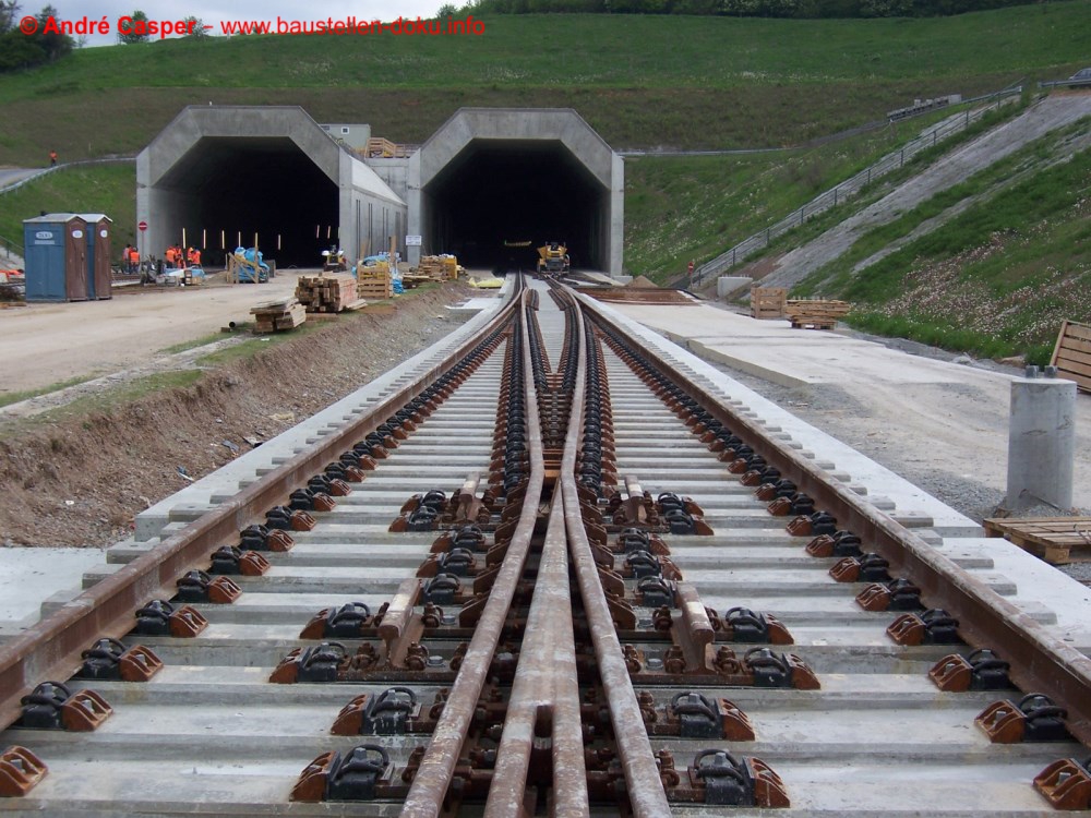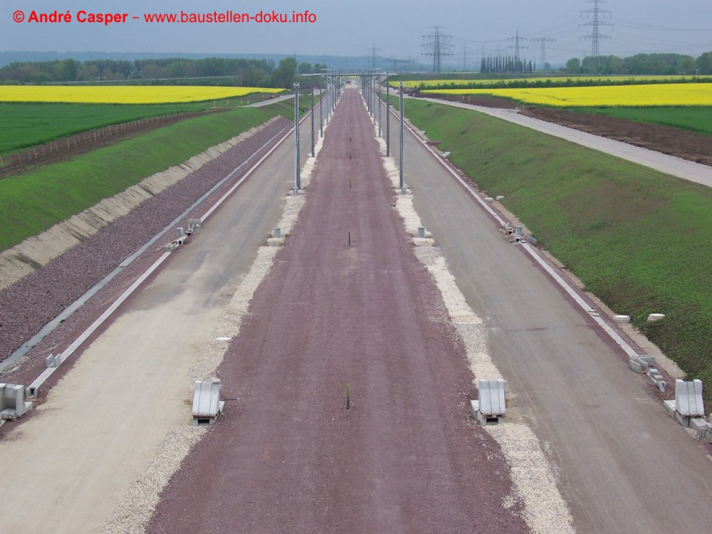 Verlegen der Festen Fahrbahn, Montage der Weichen, Ausrüstung der Überholbahnhöfe, Aufbau der Unterwerke