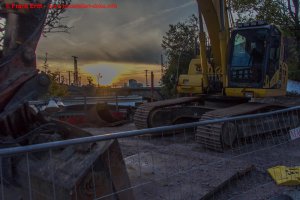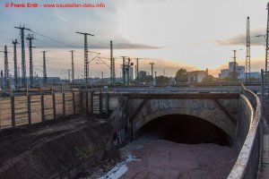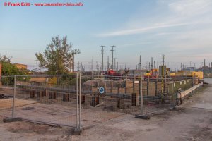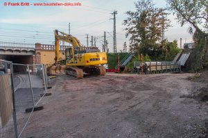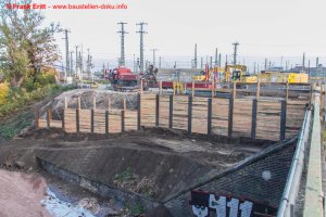 Baustraße zur EÜ Parthe erstellt, Berliner Verbau an den Widerlagern EÜ Parthe hergestellt