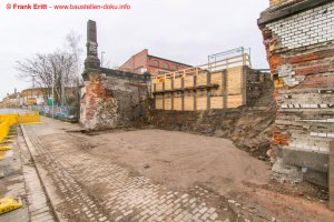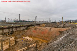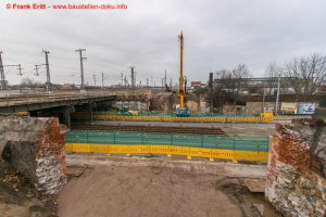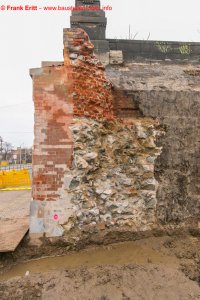 Bohrpfahlarbeiten am Nordwiderlager, Freilegung alter Gewölbeboden über die Parthe