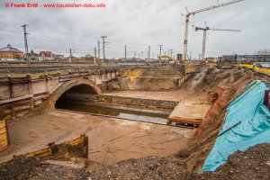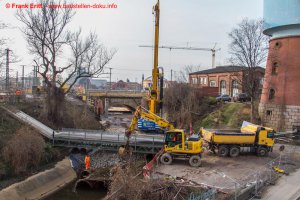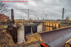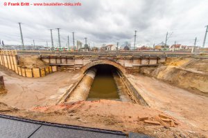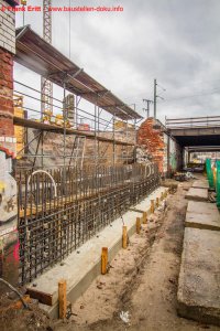 Widerlager Nord fertig betoniert, Bewehrung Fundamente Pfeiler, Abbruch EÜ Parthe Teil 1 abgeschlossen
