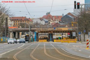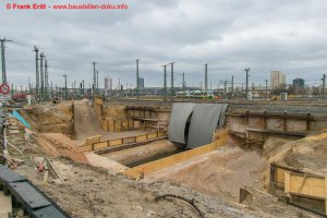 Brückenüberbau West entsteht, erste Bewehrung der Fundamente der EÜ Parthe