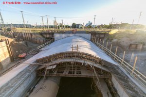 EÜ Berliner Straße inkl. historisches Portal fertig gestellt, Errichtung zweiter Bogen EÜ Parthe