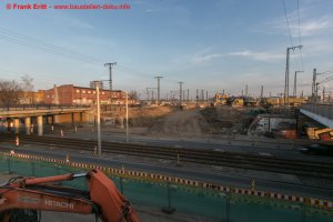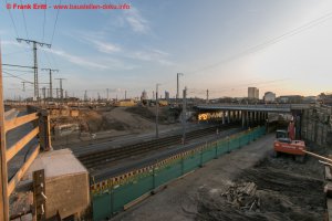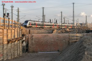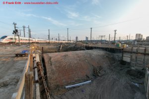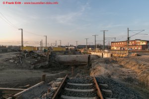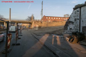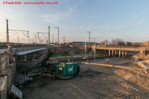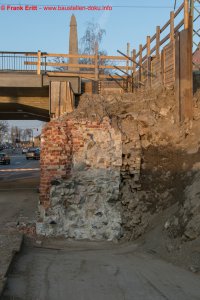 Rückbau der letzte Widerlager EÜ Berliner Straße, Einbau Verbau, Vorbereitungen zum Abbruch des alten Gewölbes der Parthebrücke