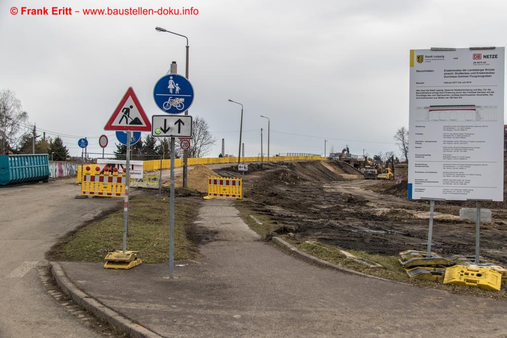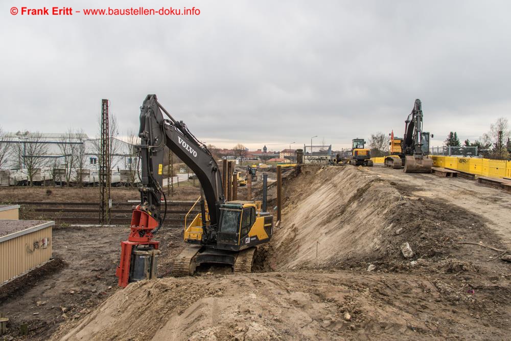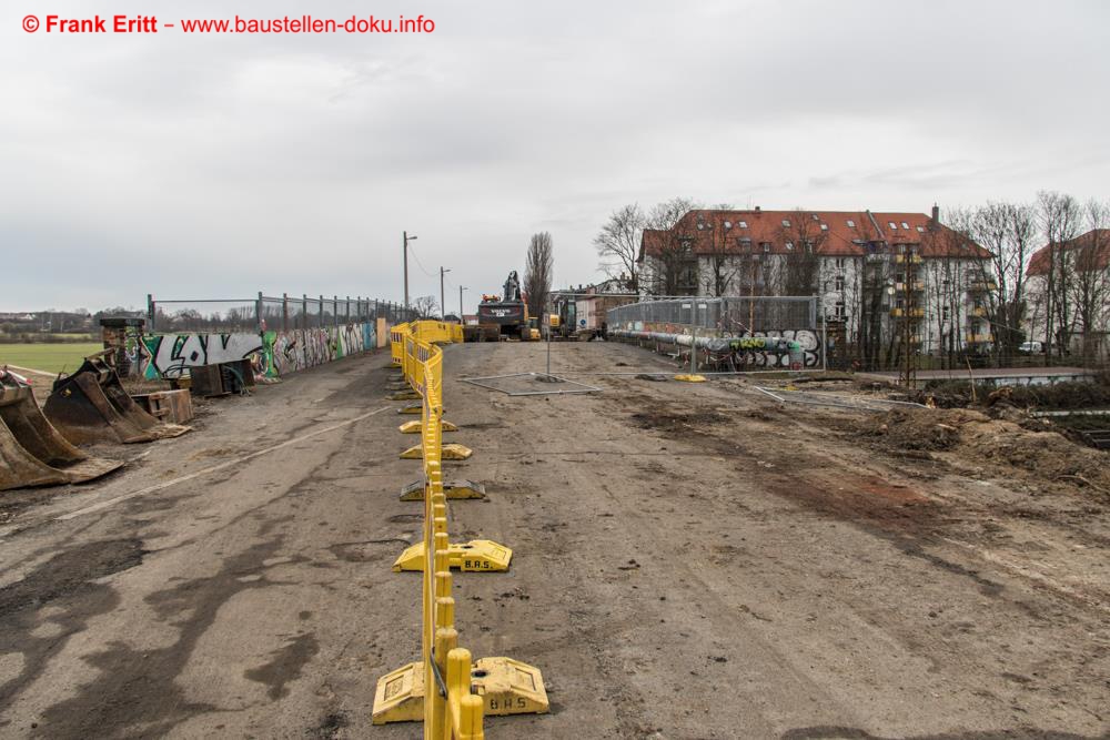 Beräumung der Böschungen, Vorbereitungen zum Bau der Hilfsbrücke für Fußgänger