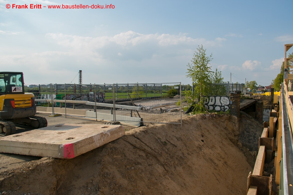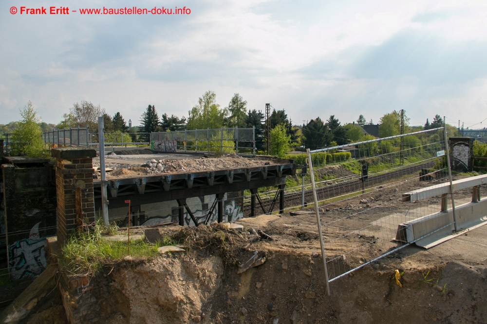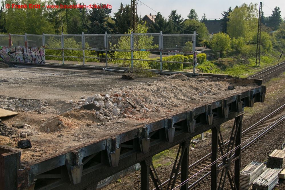 erster Teil des alten Brückenüberbaus demontiert