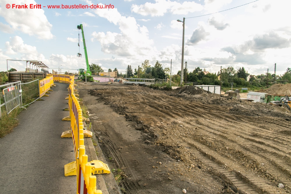 Überbau betoniert, Verfüllung der Widerlager, Straßenbau beginnt mit Tiefbauarbeiten