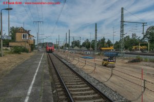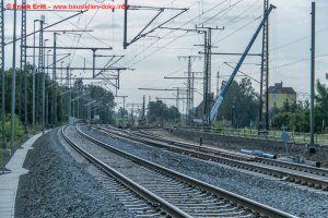 Gütergleise fertig gestellt, Bewehrung für Spritzbetonauskleidung EÜ Parthe vorbereitet, Aushub der alten Brückenträger an der EÜ Theklaer Straße, Gleisbau Gleis 2 am Bahnhof Thekla, Rückbau der altern Fußgängerunterführung erfolgt