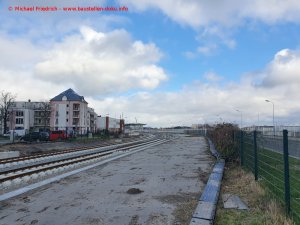 Gleisbau in der Schlussphase, Bahnsteigkanten fertig gestellt